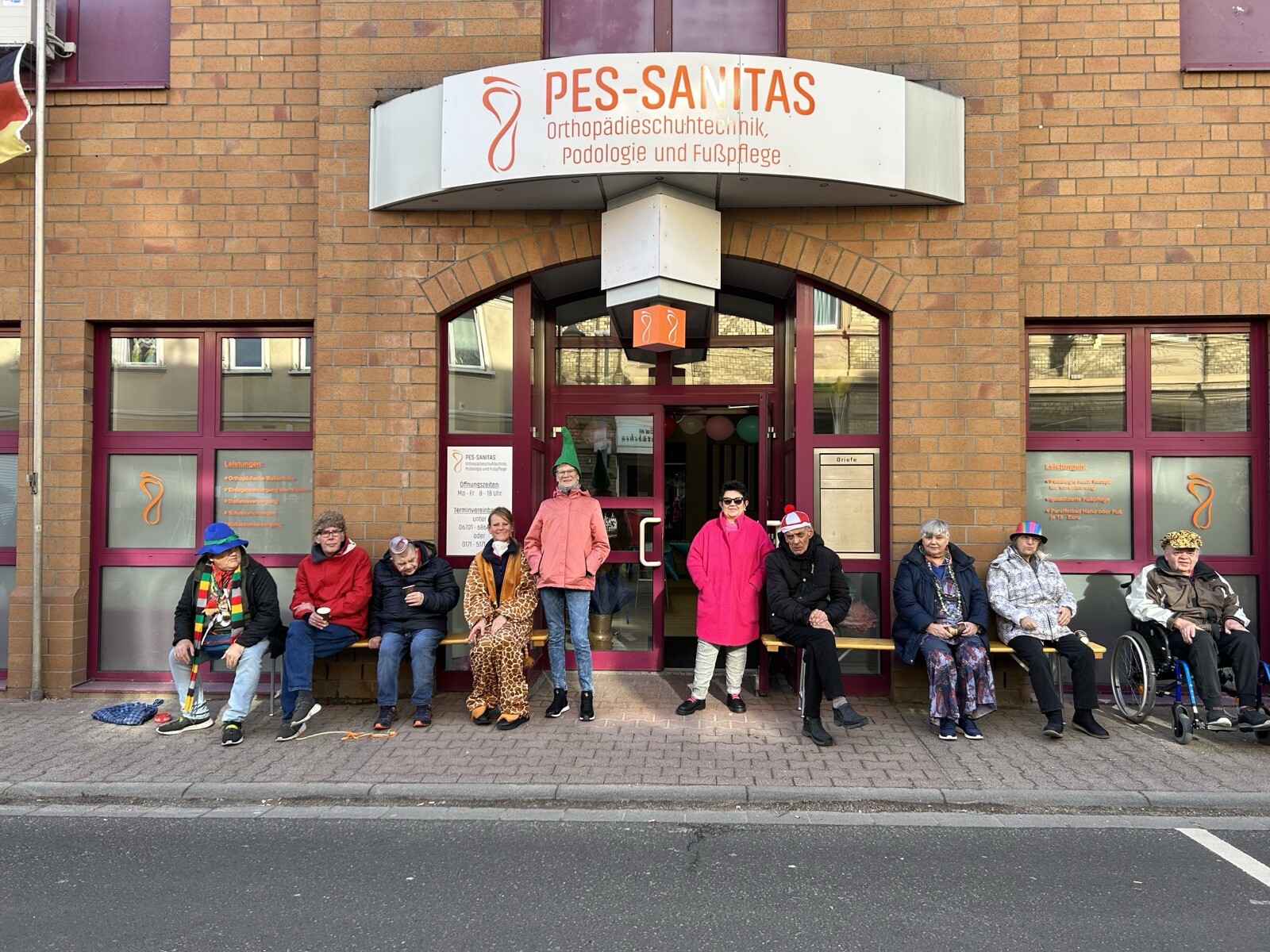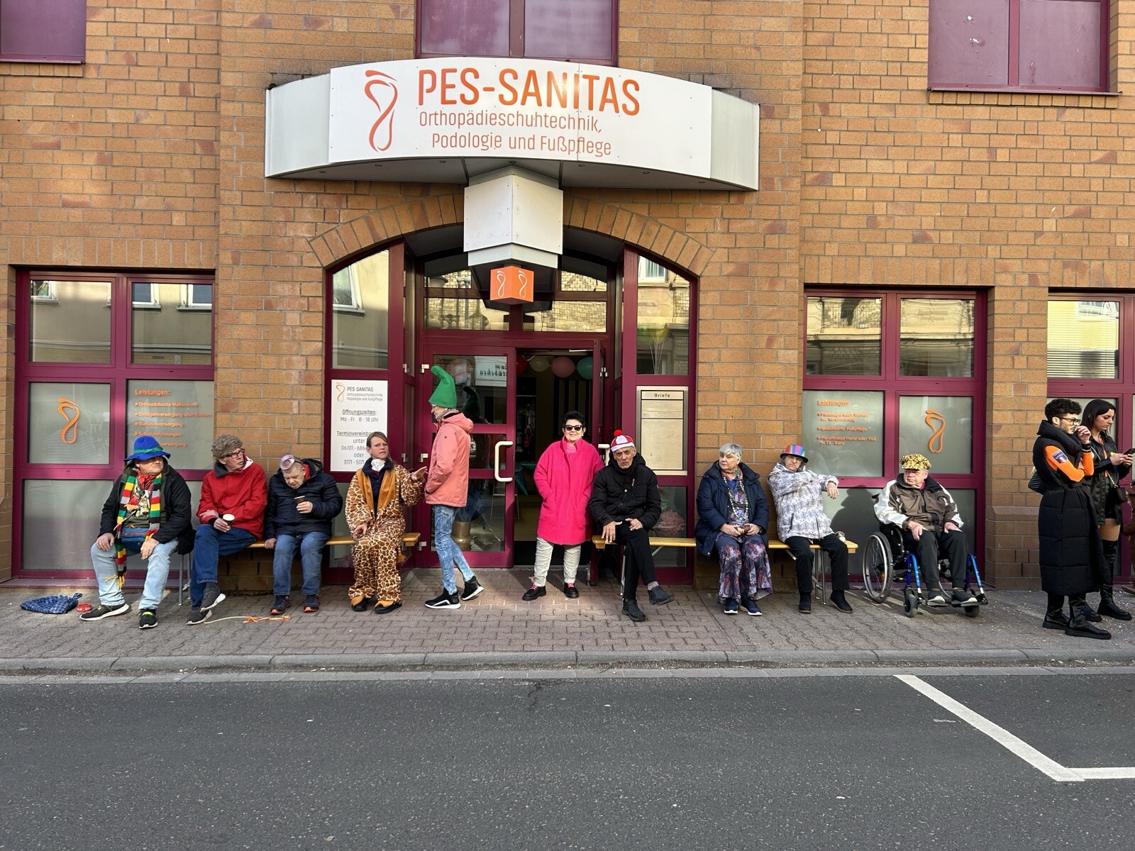 am gestrigen Tag erlebten Bewohner und Mitarbeitende des Hans-Schumm-Hauses einen fröhlichen Faschingsumzug in Sprendlingen, dank einer herzlichen Einladung der Firma PES Sanitas. Die Mitarbeiterinnen und Mitarbeiter des Geschäfts für Orthopädieschuhtechnik und Fußpflege öffneten ihre Türen und luden die Gäste aus dem Hans-Schumm-Haus zu einem gemütlichen Kräppelkaffee und dem bunten Treiben des Fastnachtsumzugs ein.
