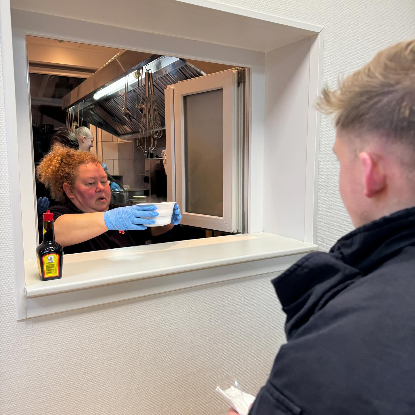 In kurzer Zeit standen in der Unterkunft der DRK-Bereitschaft Erbsensuppe, Gulaschsuppe, Würstchen und belegte Brötchen für 150 Feuerwehrkräfte bereit. Die Essensausgabe erfolgte dann passenderweise auch gleich in den Räumlichkeiten des DRK.