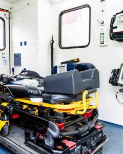 - Elektrohydraulische Fahrtrage STRYKER Power Pro XT zur Entlastung der Besatzung