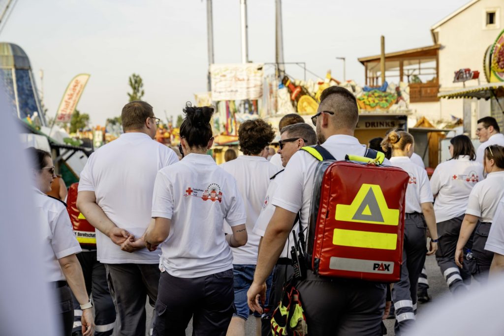 Während des gesamten Jahrmarkts ist das DRK rund um die Uhr in der Jahrmarktswache vor Ort – nicht nur für Gäste, sondern auch für Schaustellerinnen und Schausteller.