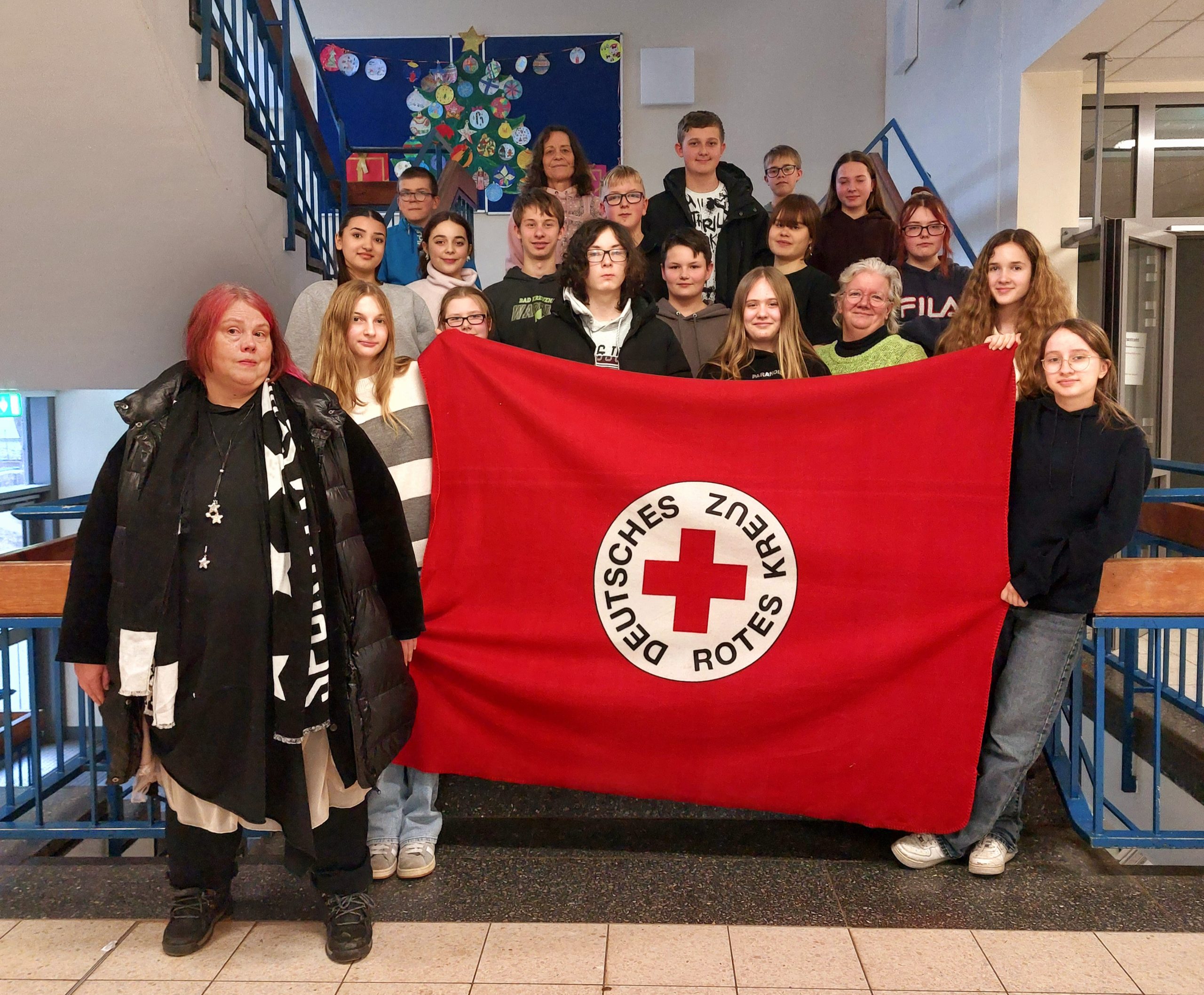 Am 13. Dezember 2024 fand an der Disibod-Realschule Plus in Bad Sobernheim ein Schulsanitätsdienst-Kurs statt, der von Christiane Hoffmann, einer erfahrenen Erste-Hilfe-Ausbilderin des DRK Kreisverbandes Bad Kreuznach e.V., geleitet wurde. Der Kurs erstreckte sich über den gesamten Schultag, von 8 bis 16 Uhr, und bot den Schülerinnen und Schülern der Klassenstufen 7 bis 9 eine intensive Einführung in die Grundlagen der Ersten Hilfe und die Aufgaben eines Schulsanitätsdienstes.